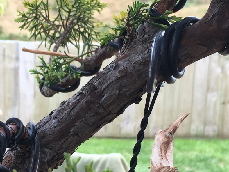 I had to move my trees three in the last six months. First from a colder, wetter part of New Zealand to an almost subtropical climate. The first place was a temporary place while we were shifting our household, then to a rental until we shifted into our own house three months later. Eighteen months after the lifting (January 2018) it was time for its first styling. Deadwood was created on the cut branches and then the wiring started. This took about six hours with not more than two hours done per day. I find it is best to start at the bottom of the tree and then work towards the apex of the tree. I have just used aluminium wire and varies from 1mm thickness to 4mm thickness. Quite a few guy wires were used to pull larger branches down. I use plastic tubing to protect the branches. Due to a few harsh bends, light cracks appeared and these were sealed with cut paste.