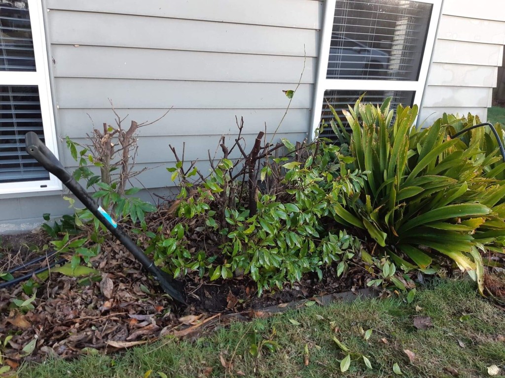 This was an easy dig as there are no tap roots and especially the two in the back were in quite dry loamy soil and they came out with just a spade length pushed into the soil about thirty centimetres from the trunk and circled around each plant.
