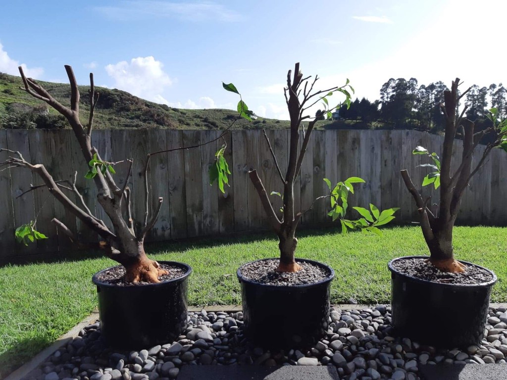 Now for the planting. Good drainage is essential. The soil that I use for this type of planting is a 1:1 ratio of pumice and compost. These are broadleaf trees and will grow relatively unchecked over the next year or two. They will all be heavily fertilised as soon as new growth comes out. The compost base helps with this and the pumice provides the necessary drainage.