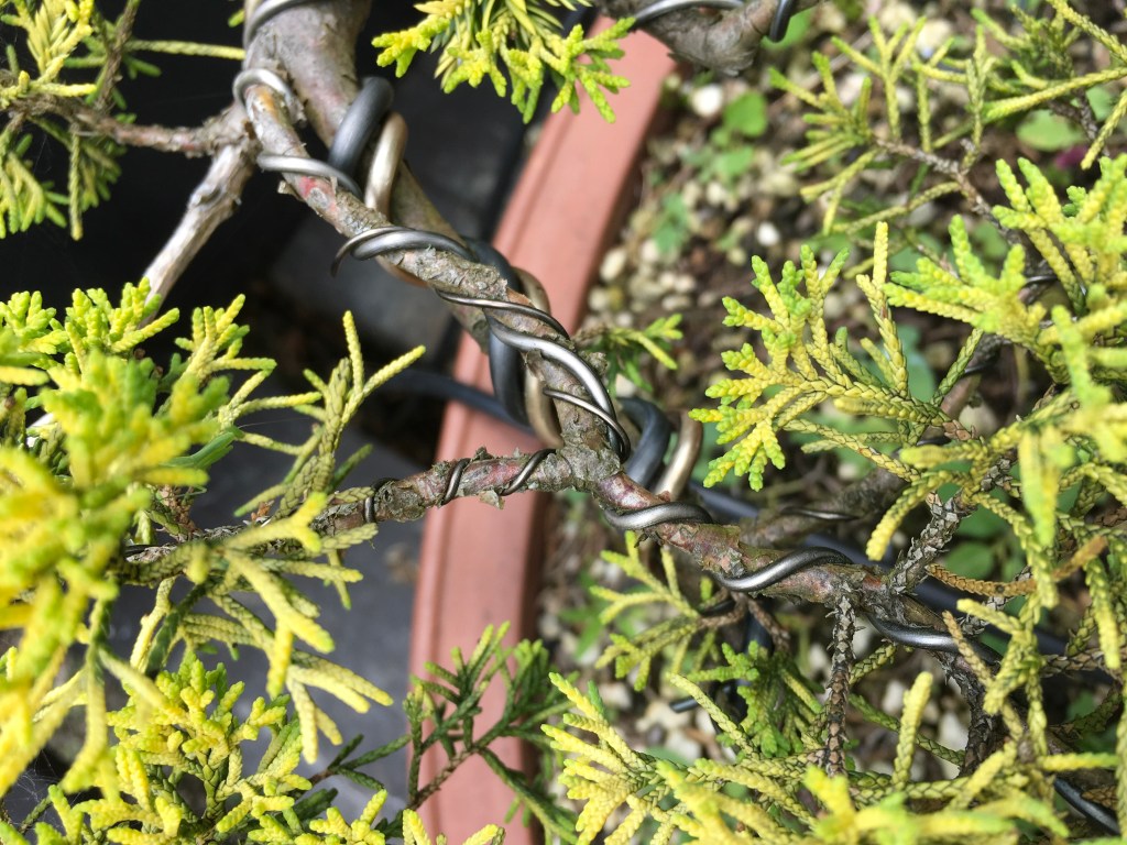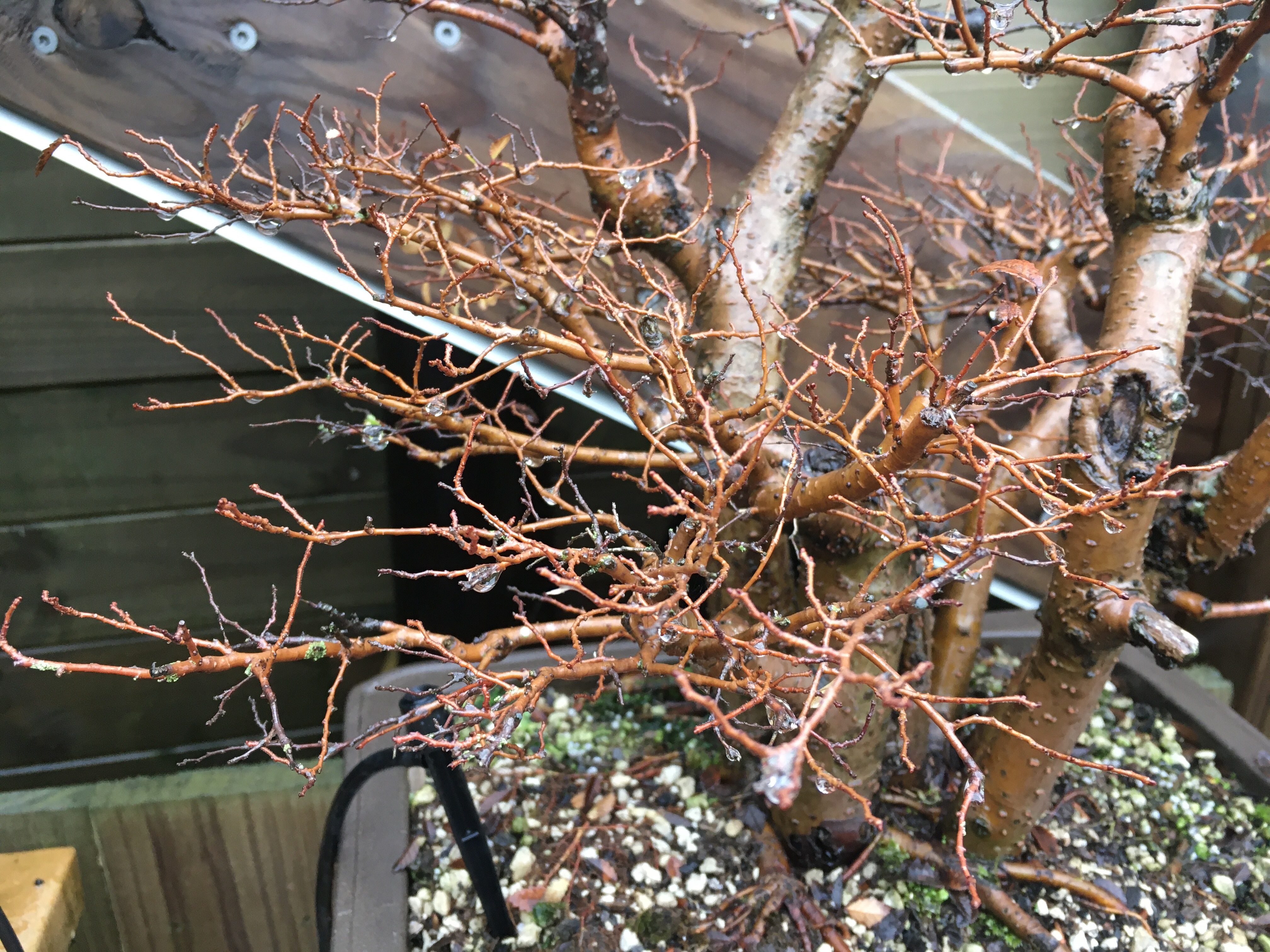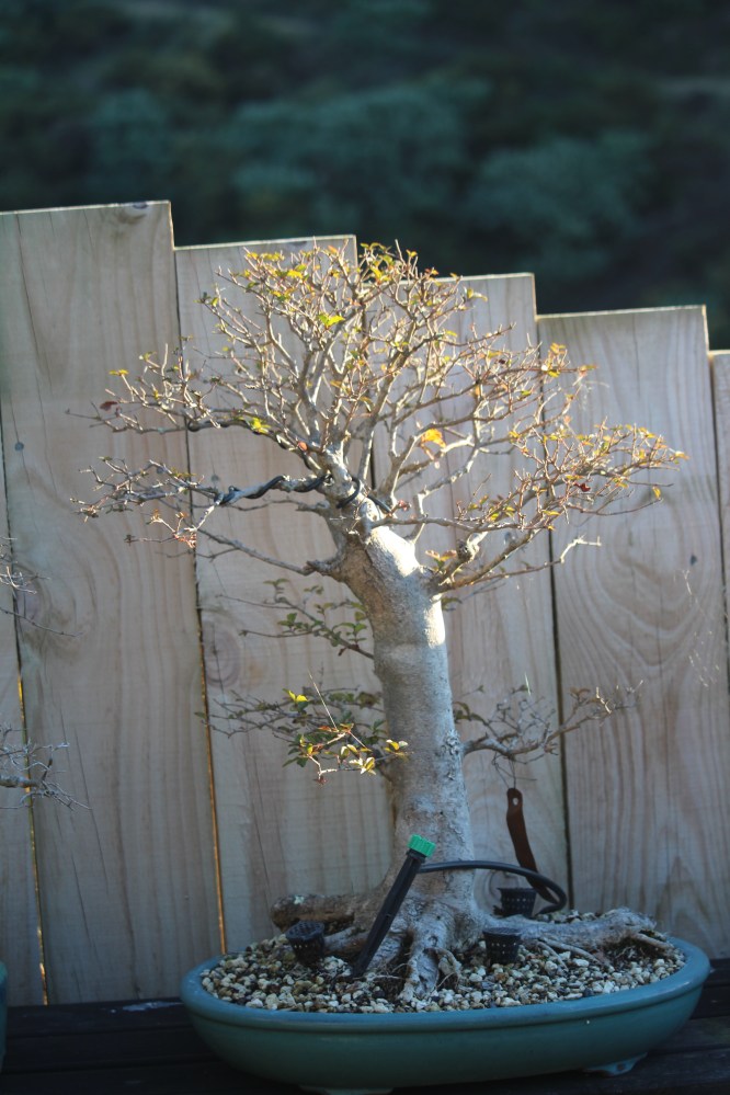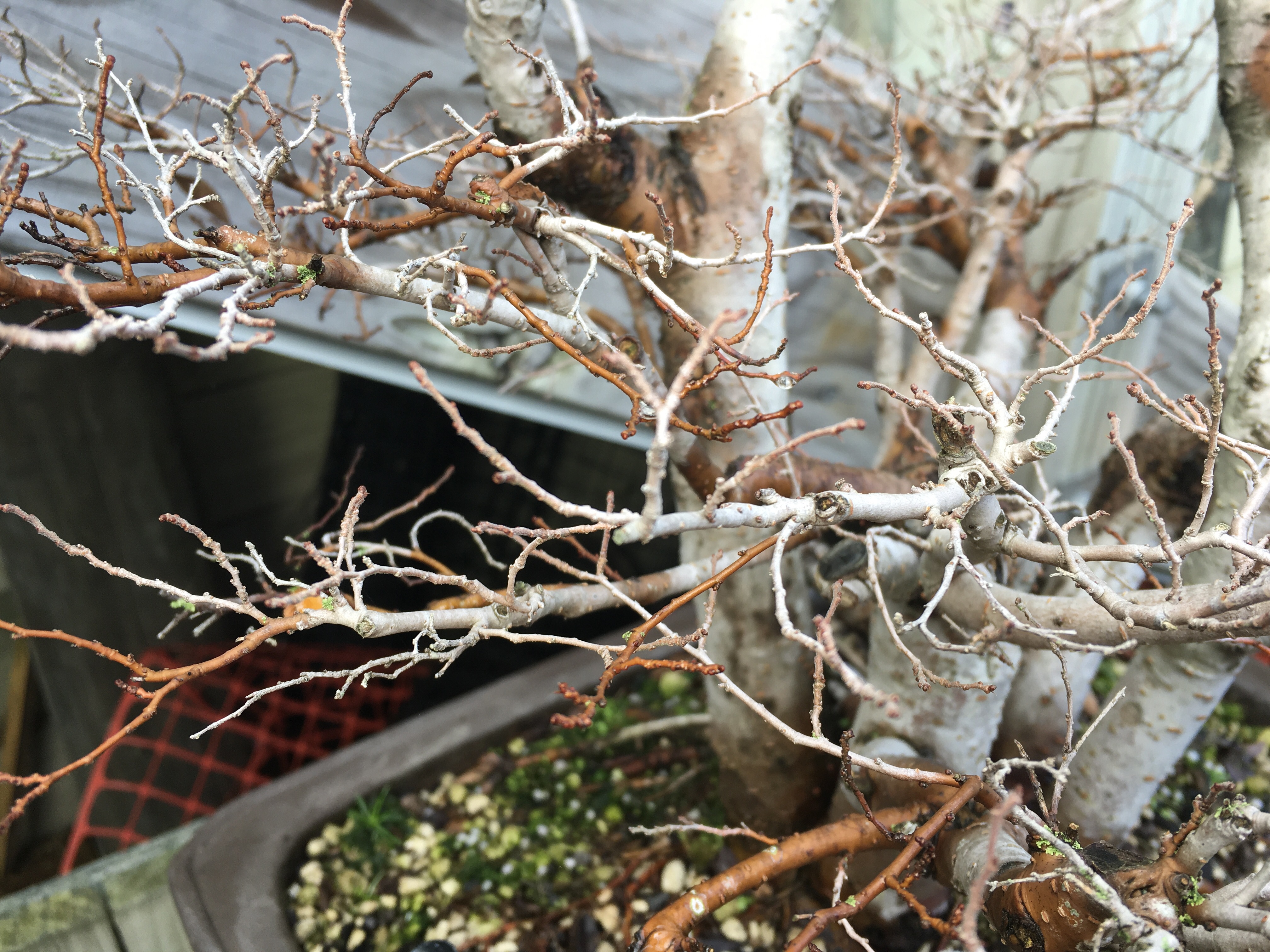 Hygiene includes removing dead leaves, checking the underside of pots for insects, slugs and snails and allowing enough space between trees for good air flow. Trees on shelves backing on to a wall can at times not get the air flow that is needed or even burn from the sun’s reflection (heat) off the wall. Tools should be cleaned regularly and preferably with an alcohol-based product. This needs to be done in between working on trees who are susceptible to disease and where disease is present.