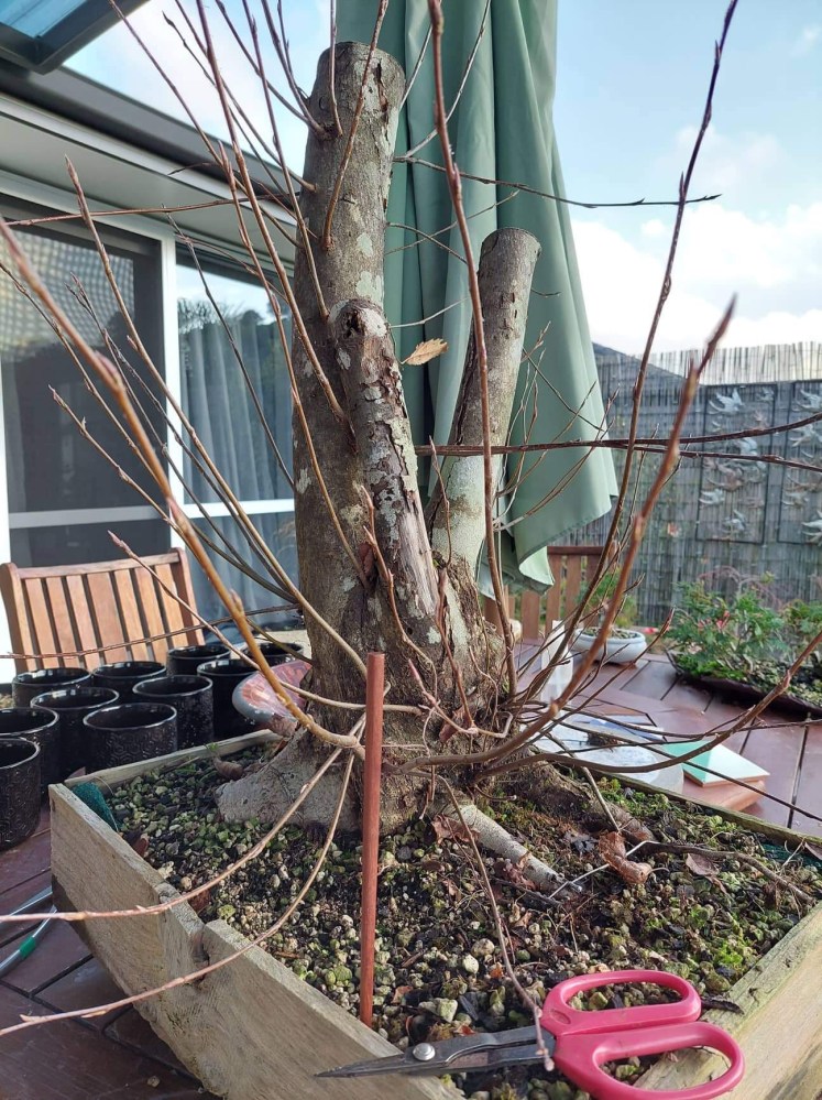 I mentioned taking calculated risks earlier. It really comes down to mitigating the risks by thinking through each risk and finding a way to minimise the risk. These include not potting anytime soon which means no root work at this time, sealing all the wounds and keeping the tree out of wind and harsh sunlight. Extensive wiring took place and this is mitigated by placing guy wires in places to support the harder wiring as to take some of the load off. Guy wires are attached to the wire on the branches / Jin and not on the branches itself. Now, let’s pray.